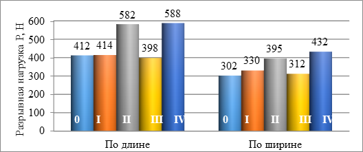 Рисунок 2. Гистограмма изменения разрывной нагрузки трикотажа