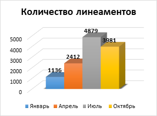 Результаты и обсуждение. Количество выделенных линеаментных структур по месяцам представлено на рисунке 2.