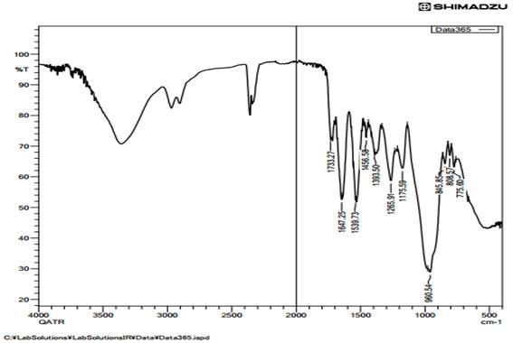 Рисунок 3. ИК-спектроскопия модифицированного акриловой кислотой карбамидоформальдегидного олигомера