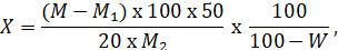 Здесь: М - масса колбы с высушенным жиром, г; М1 - масса пустой колбы, г; 50 - объем хлороформа, взятого для растворения жира, см3; М2 - масса взвешенной пробы исследуемого продукта, г; 20 - объем хлороформного раствора жира, взятого для перегонки, см3; W - массовая доля влаги в испытуемом продукте, %.
