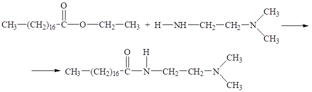 Second Stage: In this stage, the resulting ethyl stearate was reacted with N,N-dimethylethylenediamine, leading to the formation of the amide ester N,N-dimethyl stearamide (stearoamide). Amide Formation: The formation of amide is influenced by the removal of water from the reaction mixture, which shifts the reaction equilibrium towards product formation. Since amide synthesis requires an anhydrous environment, the reaction was conducted in a dry medium to facilitate the removal of water and promote the formation of the desired product.