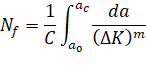 – crack growth rate per one loading cycle,