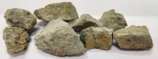 Отбор технологической пробы представляет собой комплекс операций по отбору проб исходной руды и подготовки их к анализу. Опробование проводят с целью оценки работы каждой операции по технологической схеме, определения и выявления причины снижения технологических показателей. Пробы отбирают для получения следующих характеристик продуктов: гранулометрического, минералогического и химического состава. Отбирали окисленную медную руду крупностью более 10 mm - 1000 kg (рис. 1), крупностью менее 10 mm – 500 kg. Минимальная масса общей пробы (qmin) в kg должна быть не менее величины, вычисляемой по формуле: qmin=k.d2
