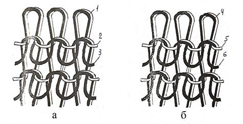 Рисунок 1. Структура лицевого (а) и изнаночного (б) слоя двухслойного плюшевого трикотажа