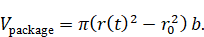 При условии равномерного распределения нити на баллоне объем упаковки можно приблизительно представить как разность объёмов цилиндров: