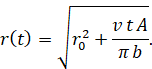 Проведем анализ роста баллона и изменение радиуса. Если за время