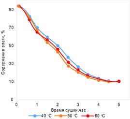 На рис. 1, 2 и 3 представлены результаты экспериментальных и теоретических кривых сушки, полученных при исследовании процесса сушки свеклы.