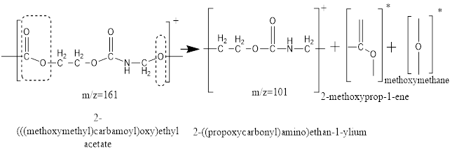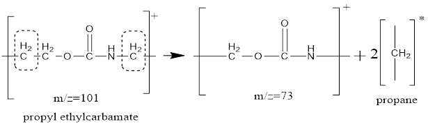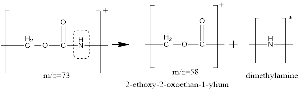 - m/z 58: Generated due to the release of an -NH- radical from the oropyl ethylcarbamate ion, indicating the presence of 2-ethoxy-2-oxoethane-1-ylium ion.
