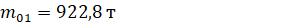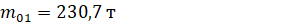 Начальная масса КМРБ – 230,7 т