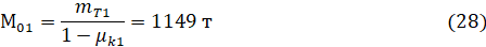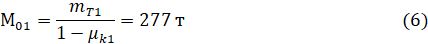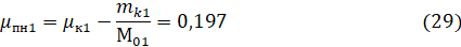 Вычислим относительную массу полезной нагрузки 1-й ступени