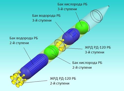Рисунок 8. Компоновка 2-й и 3-й ступеней РН сверхтяжёлого класса