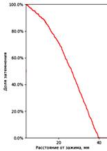 Заключение. Подтверждено влияние изменчивости числа зажатых волокон в бородке на точность анализа с применением фибрографа системы USTER HVI. Это доказано на основе синтеза бородки, сформированной из моноволокон одинаковой длины. С увеличением числа волокон в зажиме и средней длины исходных волокон искривляется форма фиброграммы, чего не должно быть при анализе исходных волокон равной длины. Высказана гипотеза, что при моделировании волокон с реальным распределением их исходной длины её увеличение будет вызывать рост расчетных значений средней длины ML и ошибочные результаты при определении UI, а также доли не прядомых волокон.