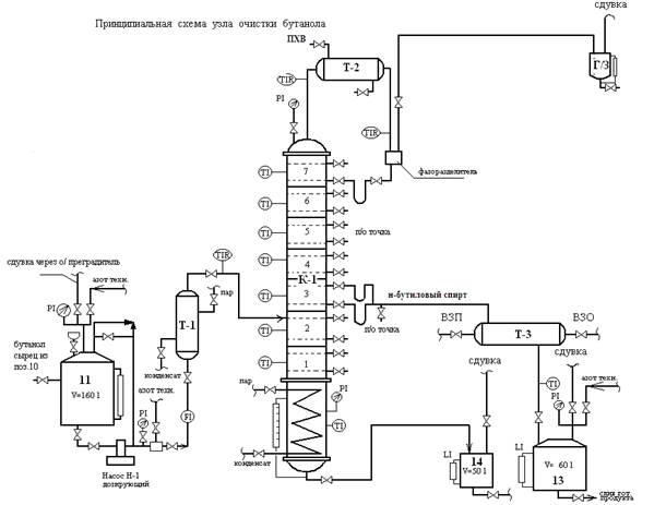 Рисунок 2. Технологическая схема ректификации н-бутанола: