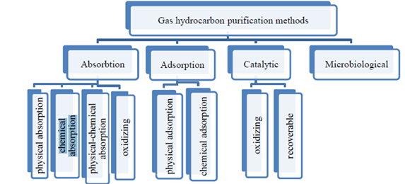 Figure 1. Purification methods of gas hydrocarbons from H2S compounds [1]
