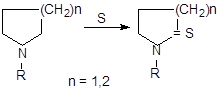 The reaction of sulfur with alkylpyrrolidines and piperidines