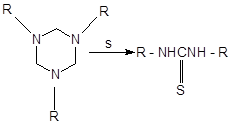 According to the data provided in the literature, there are reactions of sulfur and hydrogen sulfide with 1,3,5-triamine hexahydrotriazine.