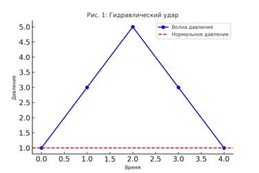 Рисунок демонстрирует волну давления, возникающую в трубопроводной системе при гидравлическом ударе.