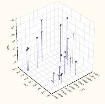На Рис.1 приведем трехмерную диаграмму рассеяния, полученную по результатам Таблицы.