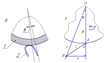 where r is the radius of the drum, l is the length of the cotton strip, φ is the angle of oscillation, j is the angle of inclination of the cotton strip relative to the drum; β is the angle of inclination of the belt tooth.