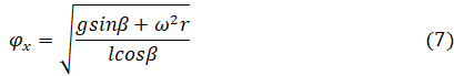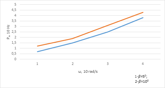 increase from 14,1 Hz to 40,3 Hz in a non-linear manner. Therefore, in order to increase the cleaning efficiency, it is recommended that the angular speed of the drum be ω>40s-1 and the gear deviation angle b>7,00.