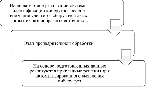 Как видно из рисунка 1 на первом этапе реализации системы идентификации киберугроз особое внимание уделяется сбору текстовых данных из разнообразных источников. К числу таких источников относятся: