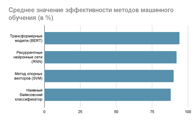 Современные подходы, основанные на глубоких нейронных сетях, таких как сверточные нейронные сети (CNN), рекуррентные нейронные сети (RNN) и модели трансформерной архитектуры (например, BERT), позволяют не только анализировать поверхностные статистические характеристики текста, но и извлекать глубокие семантические связи. Эти модели обучаются на обширных корпусах текстовой информации, что обеспечивает им высокую способность к распознаванию сложных паттернов, фишинговые сообщения, спам и вредоносные инструкции [5,7].