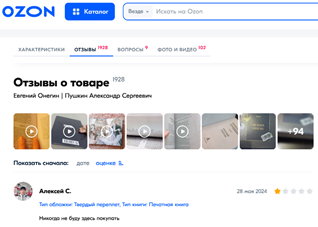 Рисунок 1. Примеры интерфейсов доступа к перечню отзывов по конкретному товару (Amazon и Ozon)