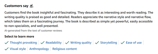 Рисунок 2. Пример резюмирования отзывов о книге на площадке Amazon