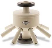 Эжектор «KOERTING» работает по следующему принципу: рабочая среда /воздух и вода/ попадает в рабочее сопло, сечение потока изменяется и давление среды падает, а скорость потока увеличивается. Зона наименьшего статического давления находится сразу за рабочим соплом. Здесь всасываемая среда входит в эжектор и перемешивается с потоком рабочей среды. Кинетическая энергия рабочего потока передается потоку засасываемой среды. Далее, в выпускном диффузоре поток вновь замедляется. Это приводит к повышению давления на выходе эжектора. Для эффективной работы эжектора достаточно предварительное сжатие воздуха до гидростатического давления (то есть, давления поступающей воды самотеком) и подачу его на сторону всасывания эжектора. Смешивание со сжатым воздухом в эжекторе, в этом случае, требует очень малого давления рабочей жидкости. В тоже время, увеличивается количество воздуха в жидкости на выходе эжектора. Одновременно Рабочие сопла эжектора снабжены спиральными насадками для предотвращения засорения. Таким образом, струя рабочей жидкости рассеивает воздух на бесчисленное множество мелких пузырей, которые перемешиваются с рабочим потоком в зоне смешения. Эта воздушно-водяная смесь нагнетается в объем градирни в режиме высокой турбулентности. При этом происходит насыщение воды избыточным кислородом. Перенос кислорода зависит не только от размера пузырьков, так как обеспечивается практически полная площадь контакта между воздухом и водой, но и от обновления поверхности пузырей благодаря турбулентному течению воды. Фирмой Коертинг проведены комплексные испытания насыщения кислородом в чистой воде /ATV M-209/ методом адсорбции кислорода, которые сформировали базу для расчета эжекторов Коертинг.