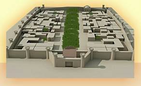 Рисунок 2. Средневековые способы махаллинские улицы и прочие рекреации, двориков традиционного открытые пространства жилья, однотипной глино-саманной, средневековья "коврового типа" постройки.