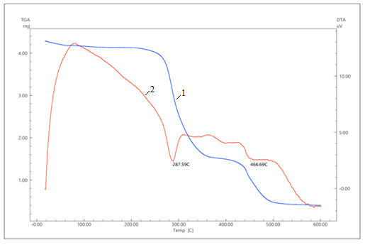 1-Термогравиметрического анализа (TGA); 2-Дифференциального термического анализа (DTA)