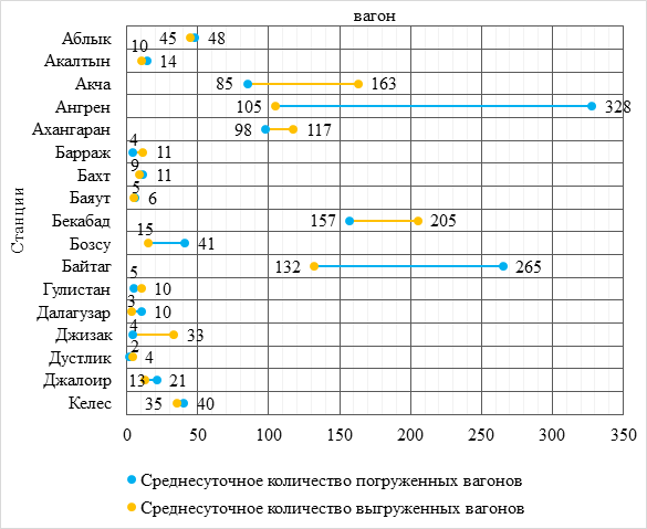 Рисунок 1. Анализ по среднесуточной погрузке и выгрузке вагонов на участке