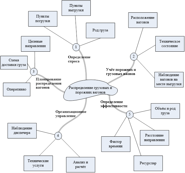 Рисунок 2. Диаграмма интеллектуальной карты (Mind map) распледеления грузовых и порожних вагонов.