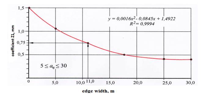 Figure 1. Graph for determining the Z1 coefficient depending on the width (as) of the protective seal by the adjacent chamber