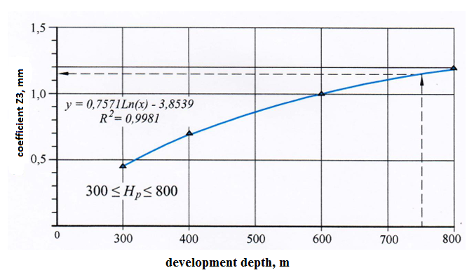 Z₃ – a dimensionless coefficient accounting for mining depth, determined using the graph in Figure 1.