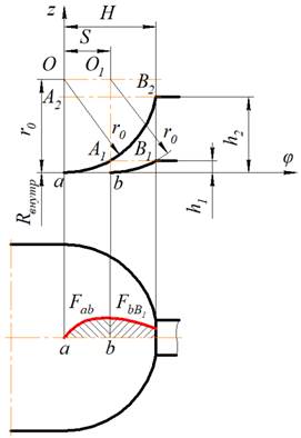 На рис.2. представлена схема обжатия заготовки для определения поверхности соприкосновения заготовки с валком на его формующем участке.
