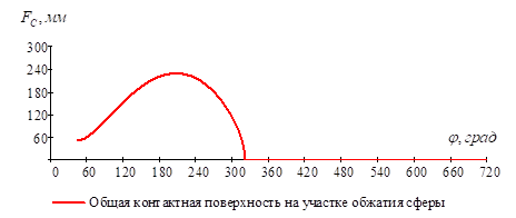 Рисунок 4. График изменения общей контактной поверхности на участке обжатия сферы правого и левого валка