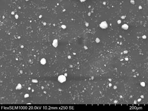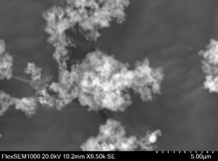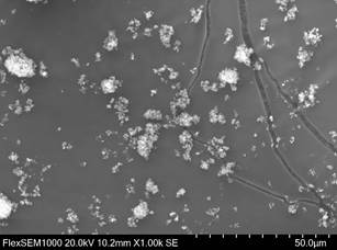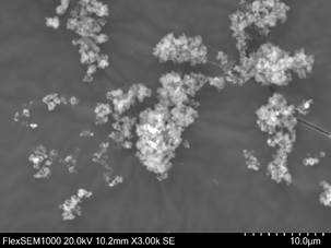 Электронно-микроскопические снимки микрокремнезема получены с использованием сканирующего электронного микроскопа Hitachi FlexSEM1000, работающего при ускоряющем напряжении 20.0 кВ, рабочем расстоянии равном 10.2 мм, при увеличении 3000x и детекторе вторичных электронов (SE).