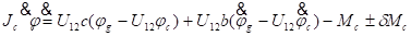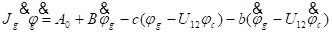 где Jg, Jc, φg, – моменты инерции и угловые смещения двигателя и цилиндра пилы; b, c – коэффициенты сцепления и диссипативные коэффициенты; A0, B – параметры двигателя; U12 – передаточная функция.