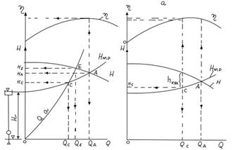 For example, when the rotation speed n=const, the pump discharge can be reduced from Qс<QА by partially closing the throttle valve on the pressure pipeline.