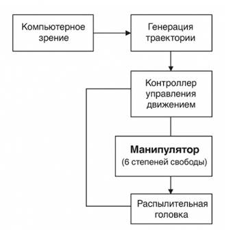 - поддержанию оптимальных параметров покраски (скорость, угол, расстояние),