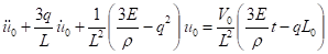 где V1 = V0 – Vм. Если V1t/L0 << 1, то t << L0/V1, то есть, если время t много меньше единицы t << 1, тогда следует, что 1/L ≈ 1/L0. В данной задаче изменение силового фактора происходит за малый промежуток времени t = 0÷0,03 сек. В связи с этим неоднородное уравнение (16) 2-го порядка с переменными коэффициентами можно рассматривать как уравнение с постоянными коэффициентами. Таким образом решение линейного неоднородного уравнением (16) 2-го порядка с постоянными коэффициентами удовлетворяет сумме решений однородной части ũ0 (t) и неоднородной части z (t) уравнения (16), то есть имеем: