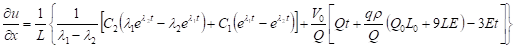 где ρ – плотность хлопка. Найдем производную функции u(x, t) от времени: