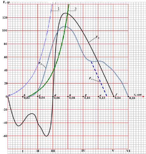 Рисунок 2. График изменения силы натяжения F в зависимости от времени t