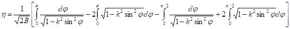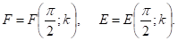 где F (φ, k), E (φ, k) – эллиптические интегралы 1-го и 2-го рода соответственно, F, E – полные эллиптические интегралы: