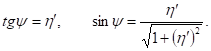 Обозначим ψ – угол наклона касательной η´ к графику кривой прогиба в системе ξОη: