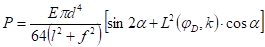 Зная параметр A, можно определить усилие Р из (55) при известном значении α: