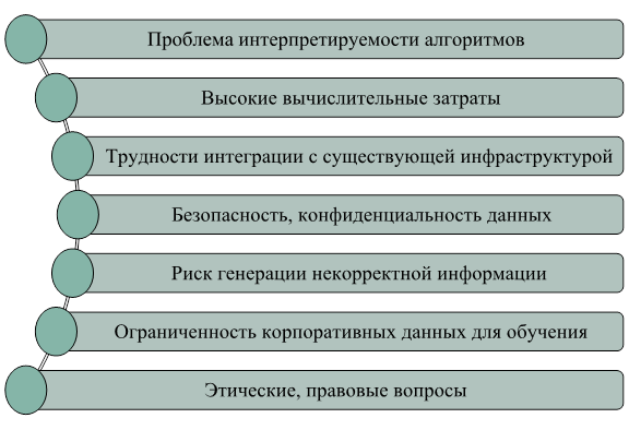 Несмотря на высокий потенциал, внедрение LLM в бизнес-процессы сопряжено с рядом вызовов (рис. 2).