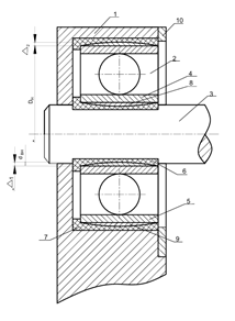 В процессе работы на вращающихся вал действуют следующие силы: движущий вращательный момент, сила тяжести, силы инерции от неуравновешенных масс, силы трения, технологические нагрузки и др. Составляющие равнодействующей силы будет направлена, как в радиальном, так и осевых направлениях. Эти силы будут действовать циклически на корпус 1 через подшипник 4 и упругие втулки 2 и 3. Наличие упругих втулок 2 и 3 значительно уменьшают действие этих сил на корпус 1.