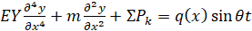 определяется как предел текучести и жесткость самой балки. Чтобы сформулировать дифференциальное уравнение вынужденной вибрации балки при осциллирующей нагрузке, дважды продифференцируем уравнение изогнутой оси балки: